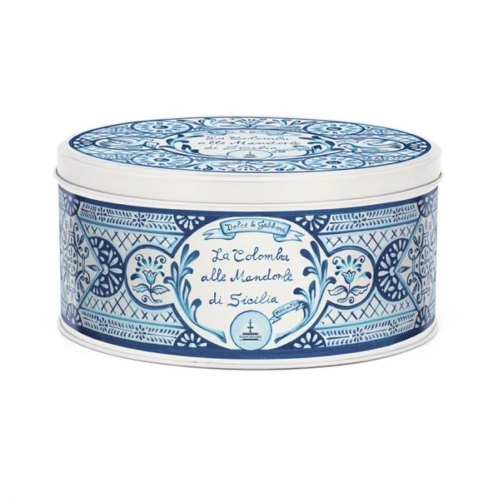 L’alta qualità artigianale di questa colomba viene preservata grazie alla nuova elegante e delicatissima scatola in latta firmata Dolce&Gabbana, di forma ellittica disegnata appositamente dalle più celebri maestranze artistiche siciliane con motivi a maiolica che si ispirano al blu del Mediterraneo e la freschezza estiva del mare, trasformando, come al solito, questi contenitori di latta in preziosi oggetti da collezionare.